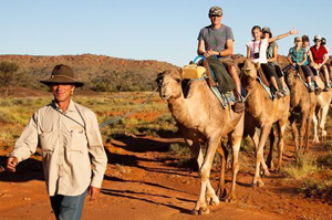 Join host Marcus Williams for a one hour camel ride from Pyndan Camel Tracks yards past Iron Bark and Mulga trees, across a clay pan to sweeping views across the MacDonnell Ranges.