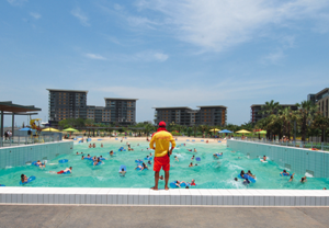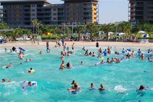 Darwin's Wave Lagoon is designed to give the experience of being in the ocean, but in the safety of a controlled environment. There is a large wave lagoon with 8 different wave cycles, and a smaller toddler pool.