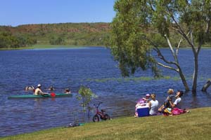 Out of town attractions include Lake Mary Ann, a cool spot for a picnic or swim and home to many water birds. There’s the old Overland Telegraph Station and adjacent on the other side of the Stuart Highway is the turnoff to the Pebbles, interesting rock formations – an ideal photo opportunity. To the south are the Devils Marbles (Karlu Karlu) spectacular rock formations and nature walks.